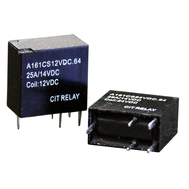 Switch capacity up to 25A with PC pin mounting, the light weight and small in size A16 Series is QS-9000 and ISO-9002 certified. Offering F Class insulation standard , the A16 Series is available with contact arrangement 1C. Coil voltage is 12VDC, with coil power options of .64W or .80W. Dimensions are 14.5 x 7.7 x 13.7mm.