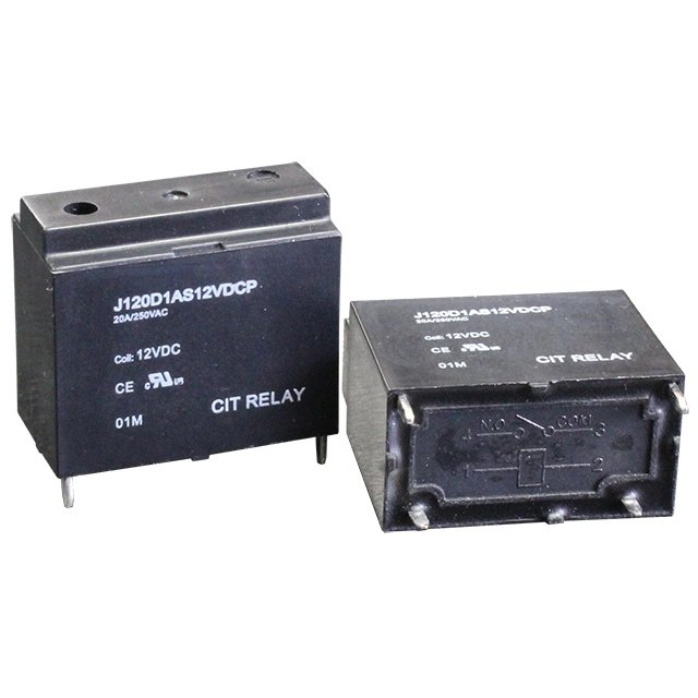 With switching capacity up to 20A, the J120D Series offers PC pin or quick connect terminals. Strong resistance to shock and vibration, the J120D is designed to withstand high in-rush. Ideal for use in household applications, contact arrangement is 1A with coil voltage ranging from 5VDC up to 48VDC with coil power of .90W. Dimensions are 30.0 x 15.5 x 23.3 (33.0)mm. UL Agency approval is E197851.