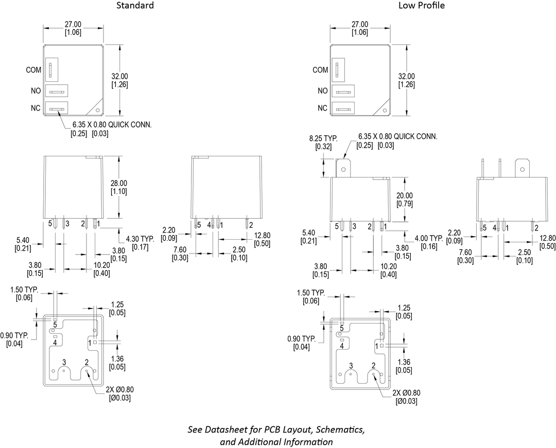 The latching L115F2 Series relay offers heavy contact load and strong shock and vibration resistance in a light-weight and small size package. This PC pin mounted relay offers 1A, 1B or 1C contact arrangement with coil voltage ranging from 5VDC up to 48VDC with coil power of .90W or 1.5W. Dimensions are 31.9 x 26.8 x 28.1mm. The L115F2 is available with or without a dust cover and a low profile version. UL Agency approval is UL E197852.