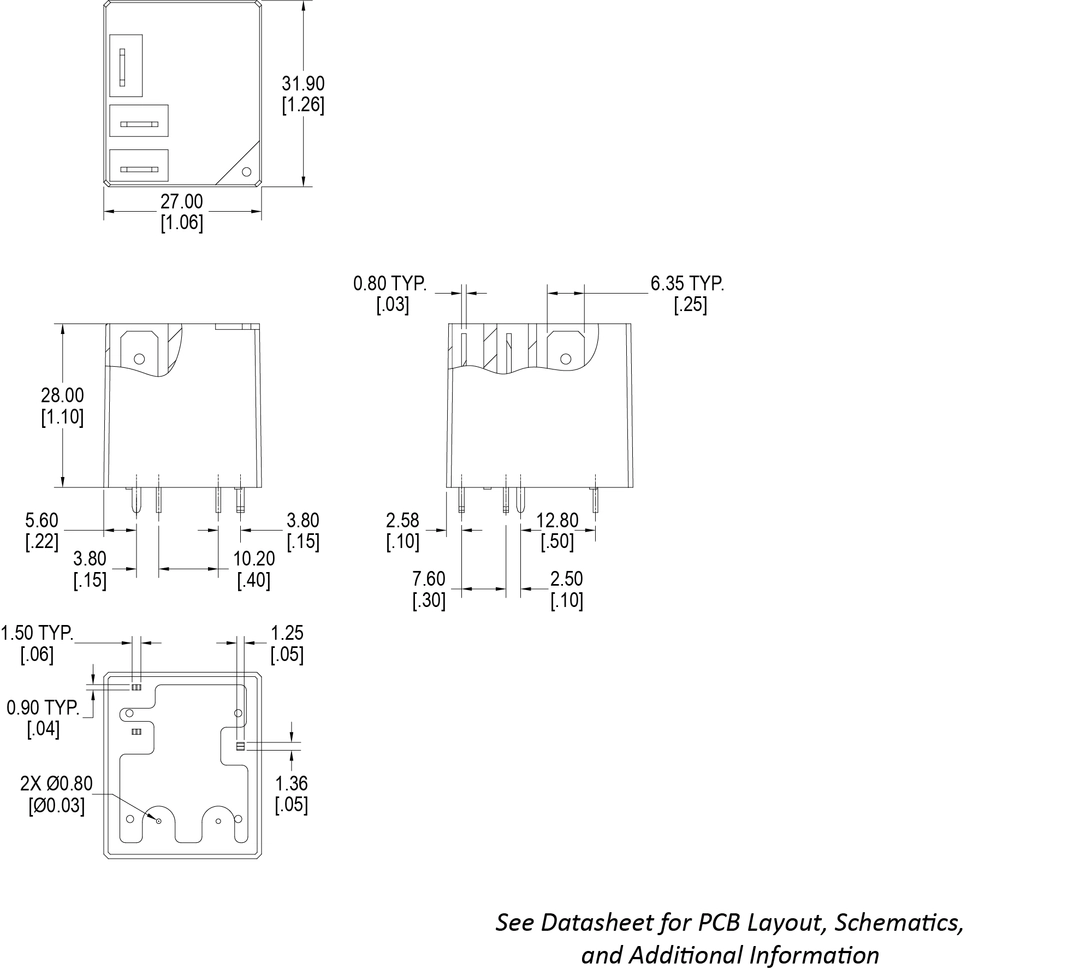 30 Amp Power PCB Relay, T90 Footprint, PC Pin and QC Pin or QC Pin with Mounting Tabs, 1A and 1C Contact Forms, UL Class F Insulation, Meets UL508 and UL873 Spacing, IP67 Sealing Degree Option